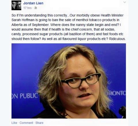 This is a common tactic relied upon by both the right and the left. We see this in the reaction to Conservative Party VP Jordan Lien’s criticism of Alberta Health Minister Sarah Hoffman’s ban of menthol cigarettes.